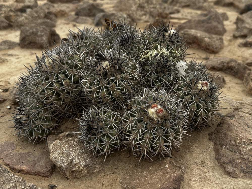 Nach dem Frühstück geht es los, etwas südlich von Vallenar besuchen wir einen zweiten Standort von Copiapoa vallenarensis. Die Pflanzen stehen am Fuß eines Berghanges. Leider ist es stark bewölkt bis nebelig, also kein gutes Licht um Fotos zu machen. Aber ein paar sind es dann doch geworden.