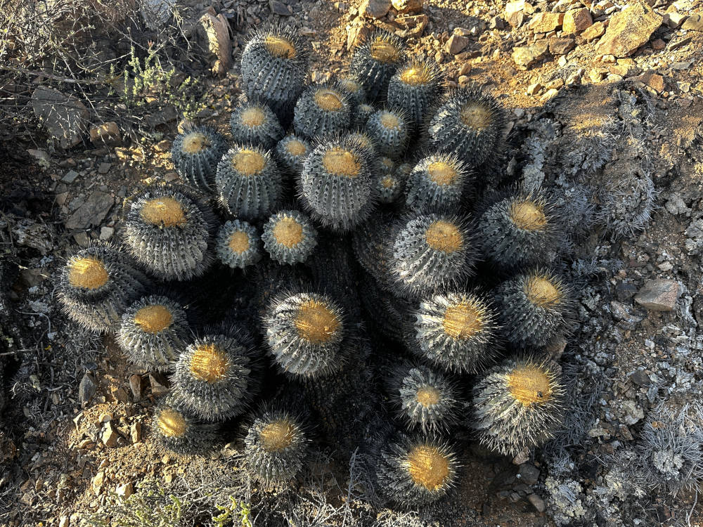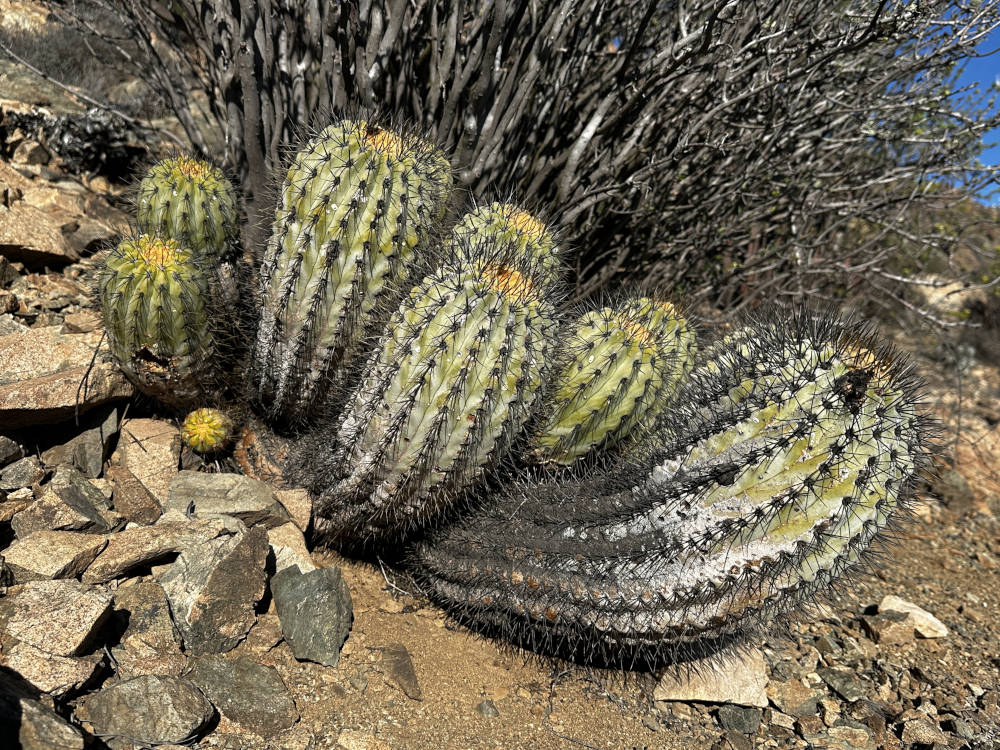 Die Pflanzen sehen sehr unterschiedlich aus, lange und kurze bis fast gar keine Dornen, Körperfarben von grünlich, graugrün bis komplett blaugrau. Man findet Pflanzen ohne Scheitelwolle, aber auch mit grauer oder mit gelber Wolle. Man könnte das Ganze als Hybridenschwarm bezeichnen, aber das überlasse ich den Experten. Auf jeden Fall sind das ganz tolle Pflanzen die man hier auf einem Fleck findet. Okay, nach sehr vielen Fotos fahren wir wieder zurück nach Taltal und dann weiter in eine Region etwas südlich von Taltal.