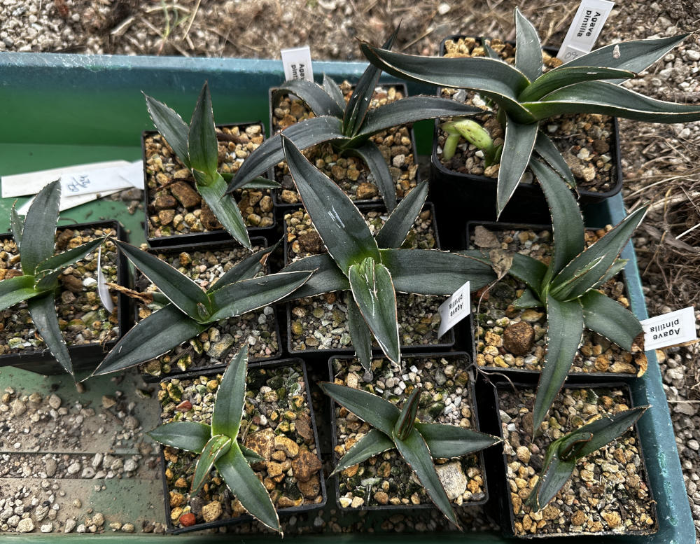 Agave obscura (Synonym: Agave polyacantha) oder eben Agave mitis | ältere Pflanzen, zum Teil schon sprossend, Durchmesser von 25 cm bis 40 cm; einige haben schon geblüht | 20 € bis 35 €, je nach Durchmesser |