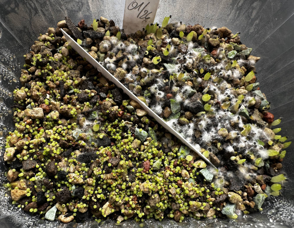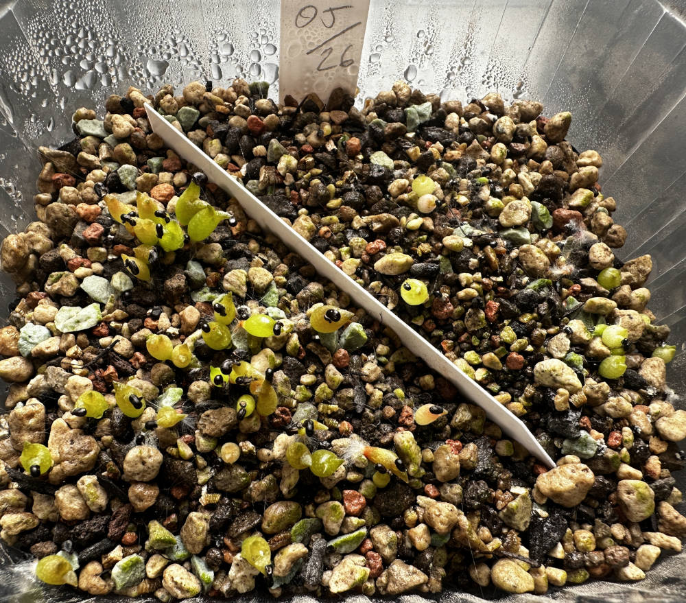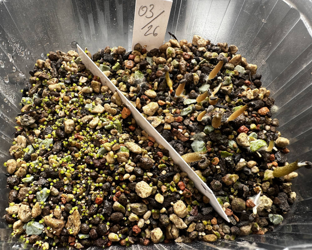 Quelle: eigenes Saatgut 18.01.2026 Eriosyce ca. 120 Korn + Copiapoa ca. 40 Korn gesät 04.02.2026 ca. 100 Korn gekeimt Bilder: 04.02.2026, |
