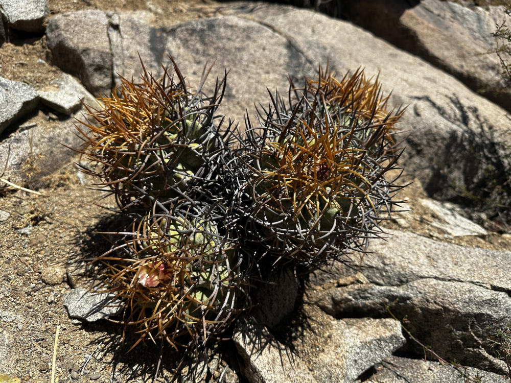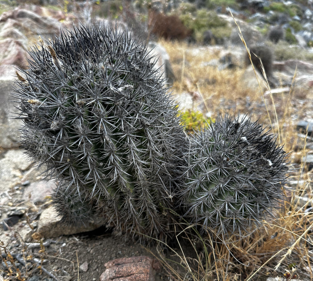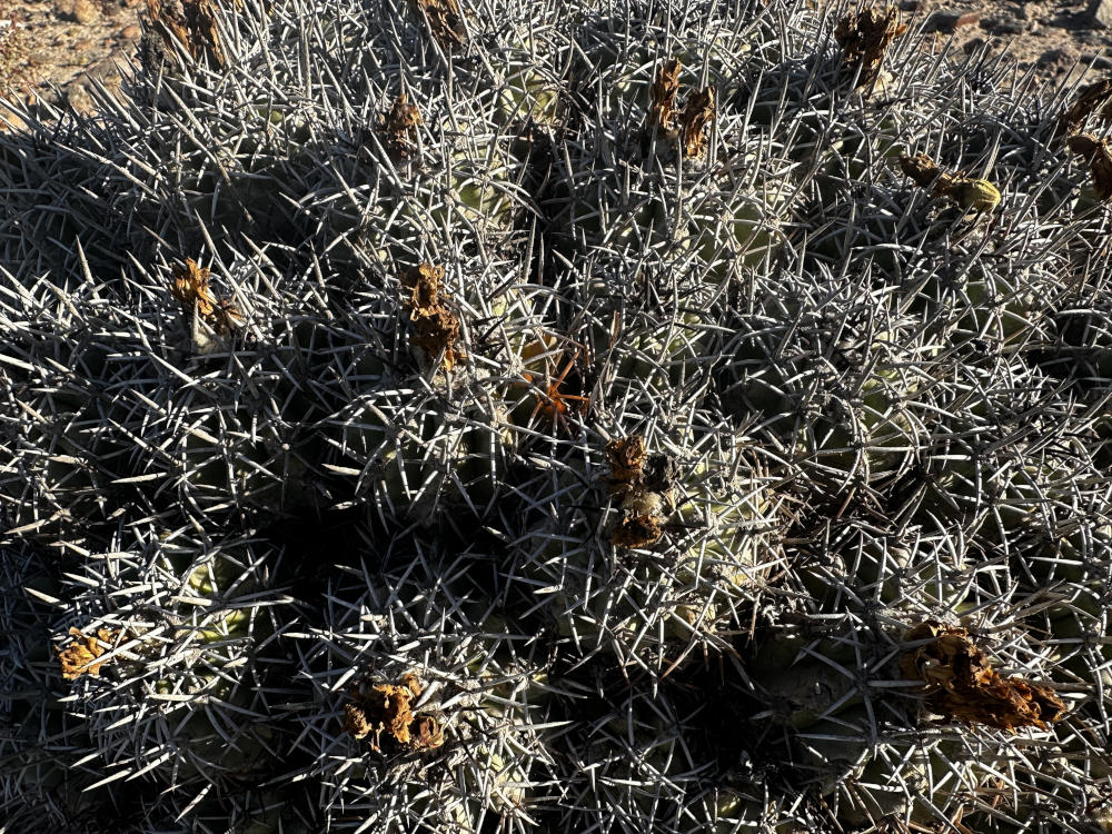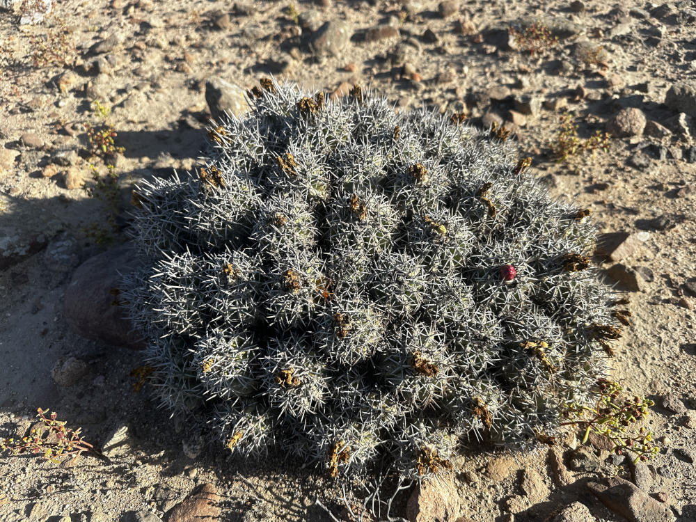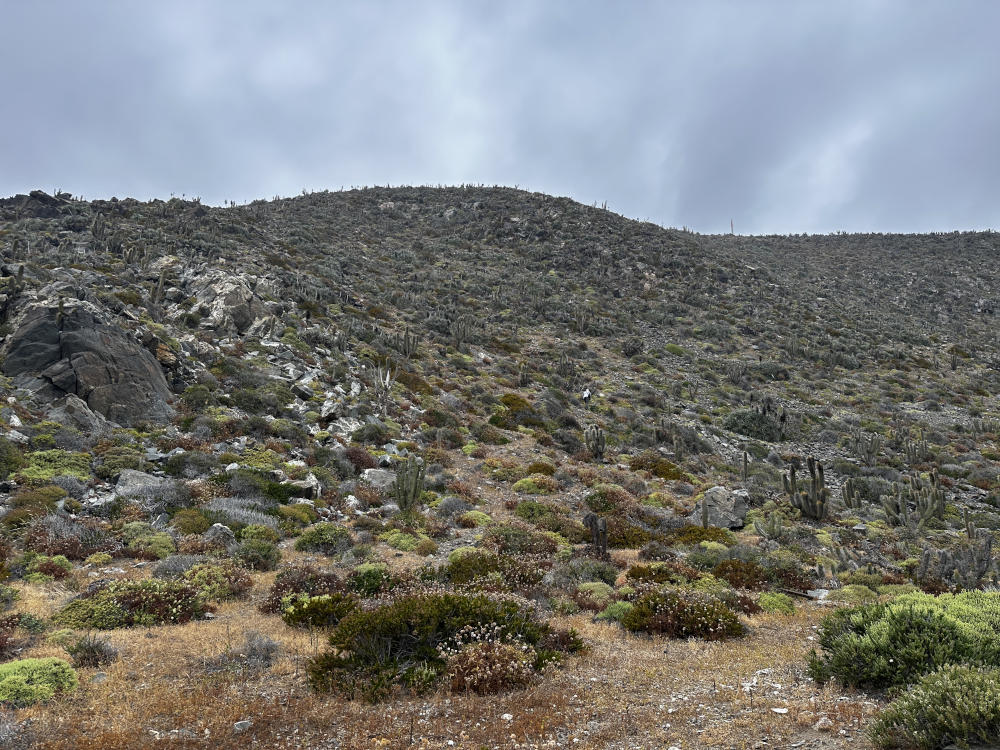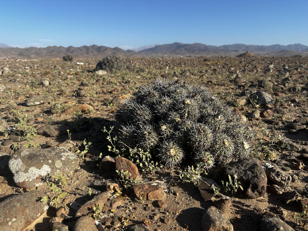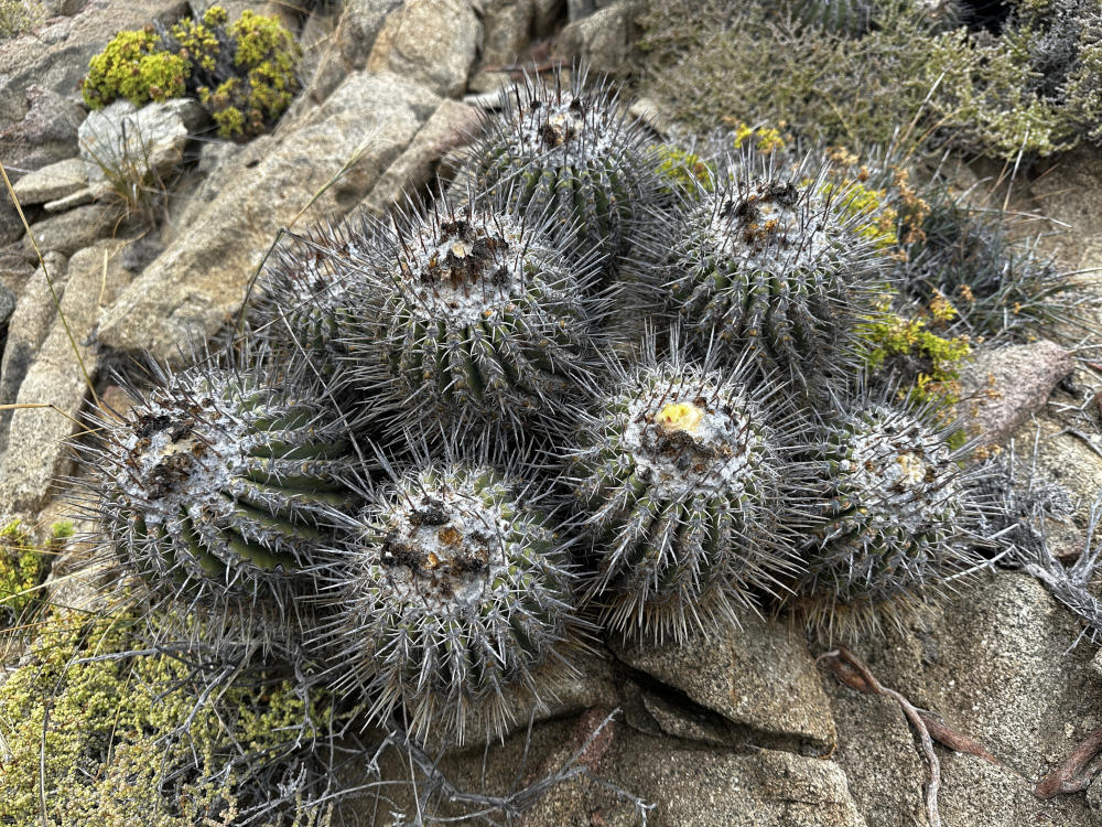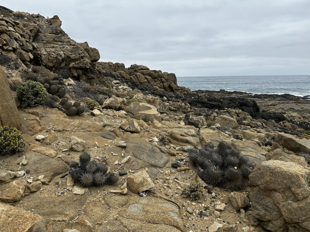 Am zweiten Tag ging es von Los Vilos, wo wir übernachtet hatten, weiter Richtung Norden. Bei El Teniente biegen wir ab von der Ruta 5 und fahren über Feldwege durch ein ausgetrocknetes Flussbett zum Strand. Dort finden wir relativ schnell Copiapoa pendulina. Die Pflanzen wachsen dort zwischen den Felsen und bilden große Polster. Einige Pflanzen sind sogar in Blüte. Neben der Copiapoa finden wir noch zwei andere Eriosycen, diese leider ohne Blüten.