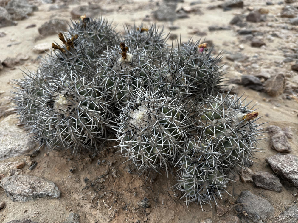 Nach dem Frühstück geht es los, etwas südlich von Vallenar besuchen wir einen zweiten Standort von Copiapoa vallenarensis. Die Pflanzen stehen am Fuß eines Berghanges. Leider ist es stark bewölkt bis nebelig, also kein gutes Licht um Fotos zu machen. Aber ein paar sind es dann doch geworden.