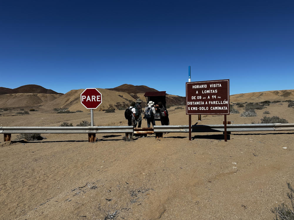 Heute (17.11.) wollen wir mit ein paar Bekannten einen Ausflug nach Las Lomitas im Nationalpark Pan de Azúcar unternehmen. Von Chañaral aus geht es über die Ruta 5 erst ein Stück nach Osten und danach Richtung Norden. An der C-112 nehmen wir den Abzweig und irgendwann biegen wir in ein kleines Tal ein.