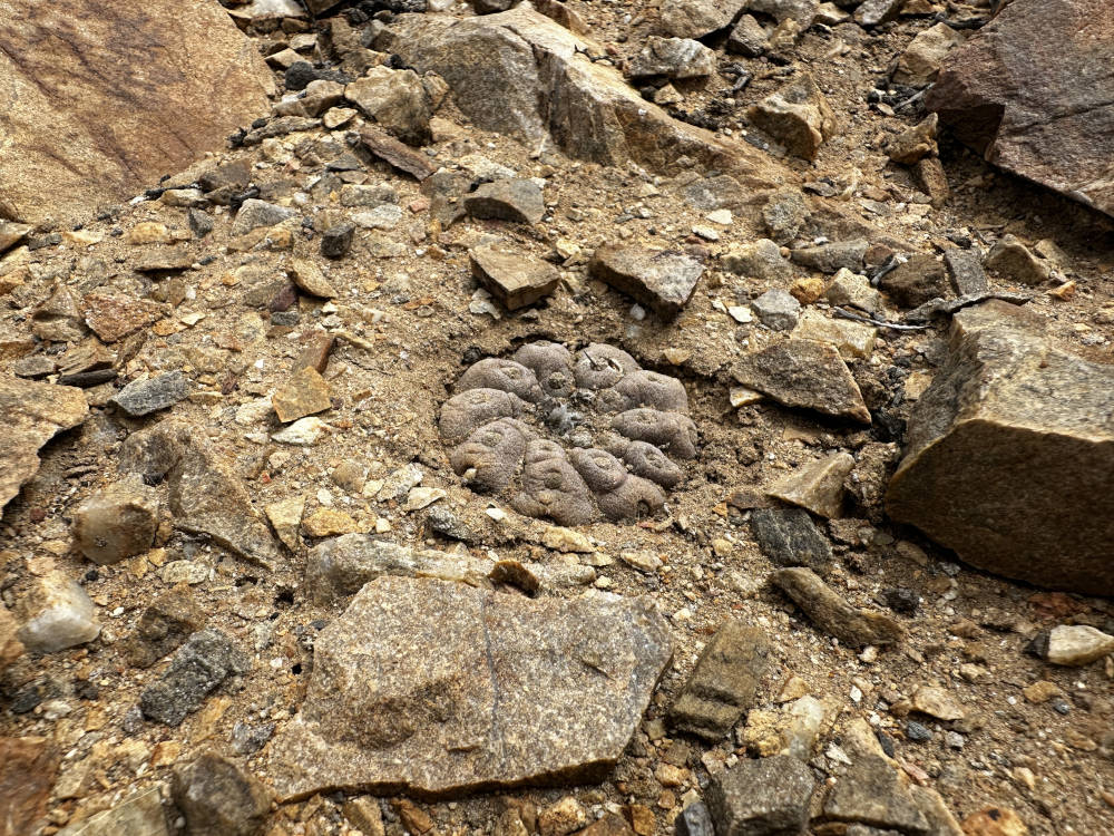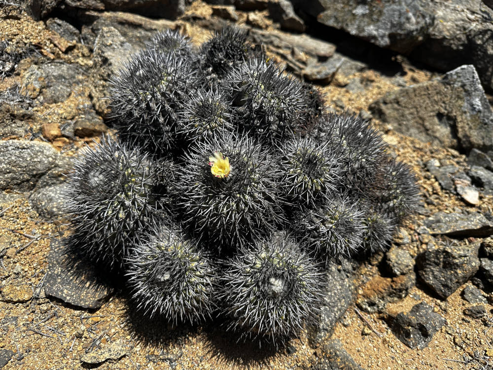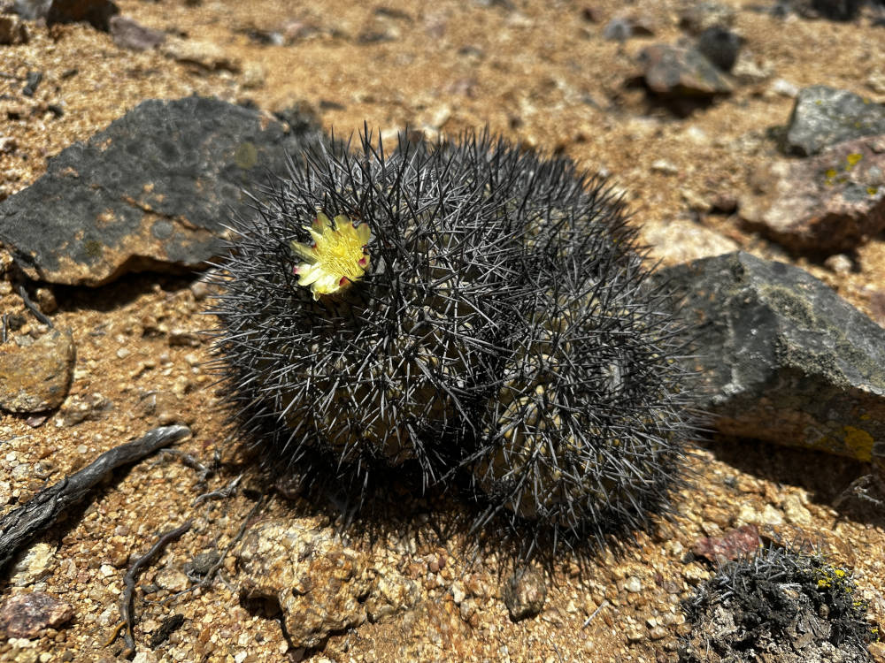 Nach dem Rückweg zu den Autos steigen wir ein und fahren Richtung Norden zu einem weiteren Standort für heute. Hier wachsen in der Mehrzahl Copiapoa serpentisulcata. Auch hier lassen sich wenige Copiapoa hypogea und auch C. bridgesii finden. Die C. serpentisulcata wachsen hier in großen Gruppen und mit etwas Glück finden wir auch eine C. bridgesii in Blüte.