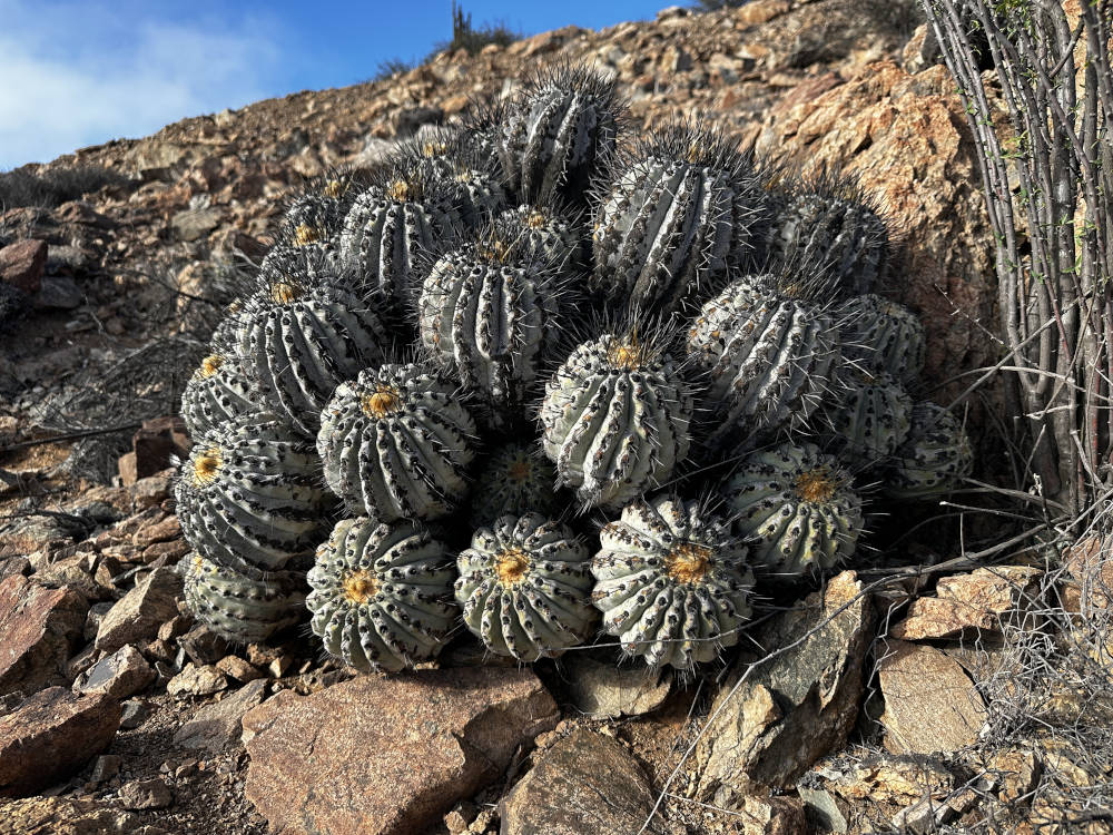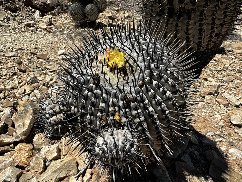 Die Pflanzen sehen sehr unterschiedlich aus, lange und kurze bis fast gar keine Dornen, Körperfarben von grünlich, graugrün bis komplett blaugrau. Man findet Pflanzen ohne Scheitelwolle, aber auch mit grauer oder mit gelber Wolle. Man könnte das Ganze als Hybridenschwarm bezeichnen, aber das überlasse ich den Experten. Auf jeden Fall sind das ganz tolle Pflanzen die man hier auf einem Fleck findet. Okay, nach sehr vielen Fotos fahren wir wieder zurück nach Taltal und dann weiter in eine Region etwas südlich von Taltal.