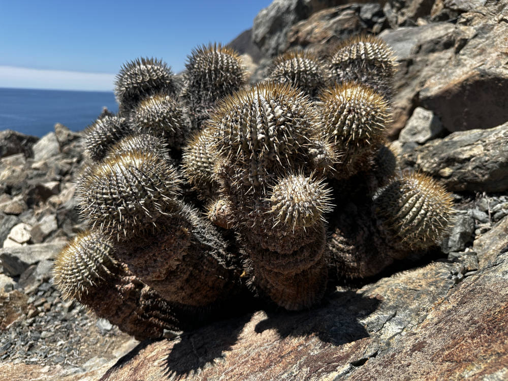 Wir fahren zurück nach Taltal und nochmal ein kleines Stück hinter den nördlichen Ortsausgang hinaus. Dort kann man auf einem Hang Copiapoa cinerea var. albispina finden. Der Hang ist arg verblockt und man muss schon etwas klettern um an die Pflanzen heran zu kommen. Aber es lohnt sich auf jeden Fall. Es sind ganz tolle Pflanzen, durchaus unterschiedlich bedornt, aber immer als albispina zu erkennen. Nach wieder vielen Fotos machen wir heute etwas eher Schluss und es geht wieder in die Unterkunft nach Taltal.