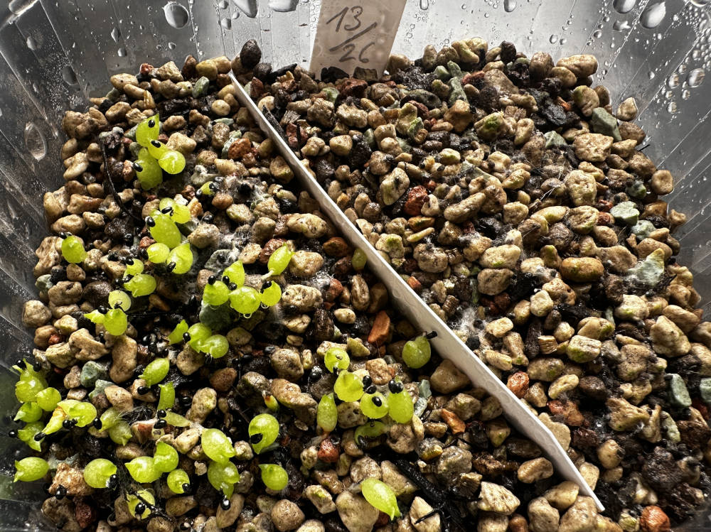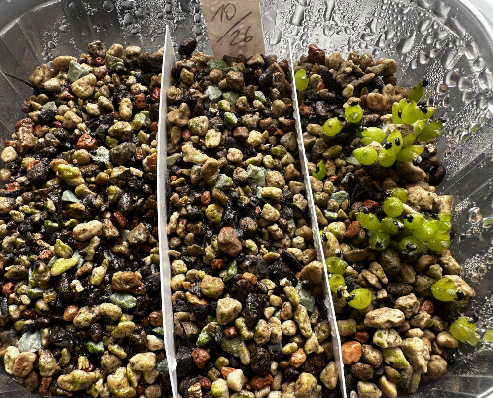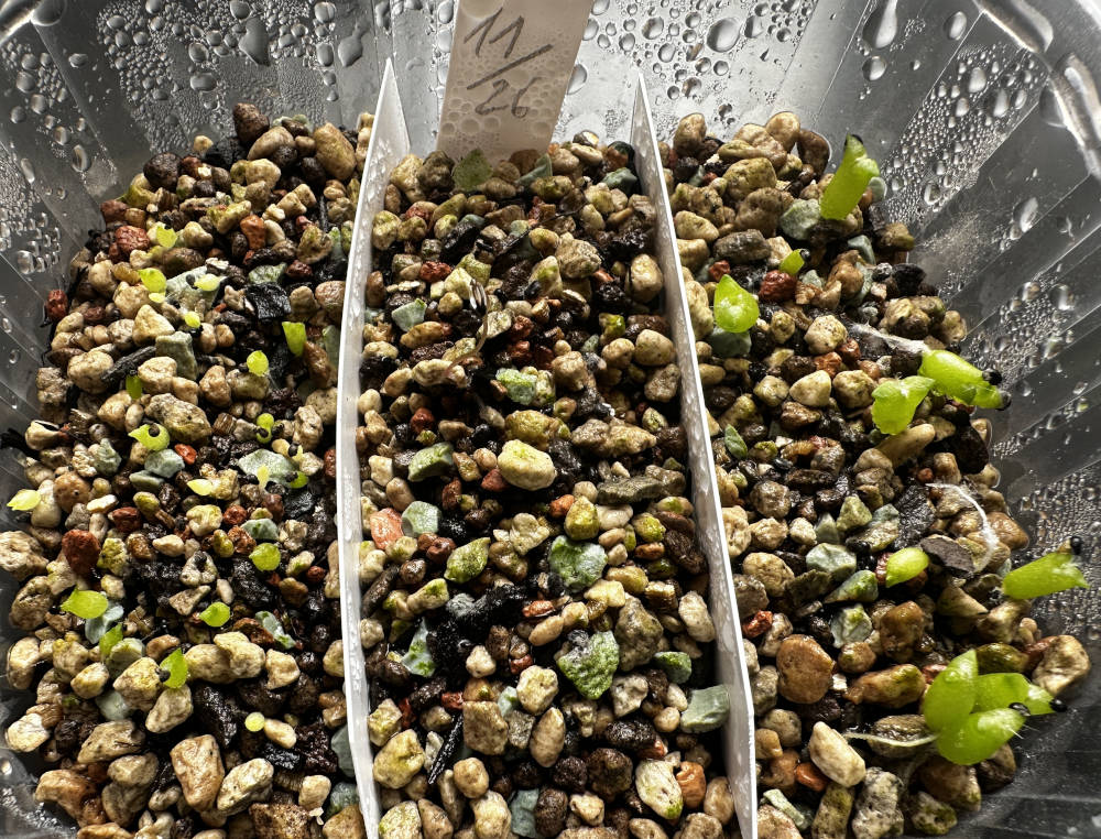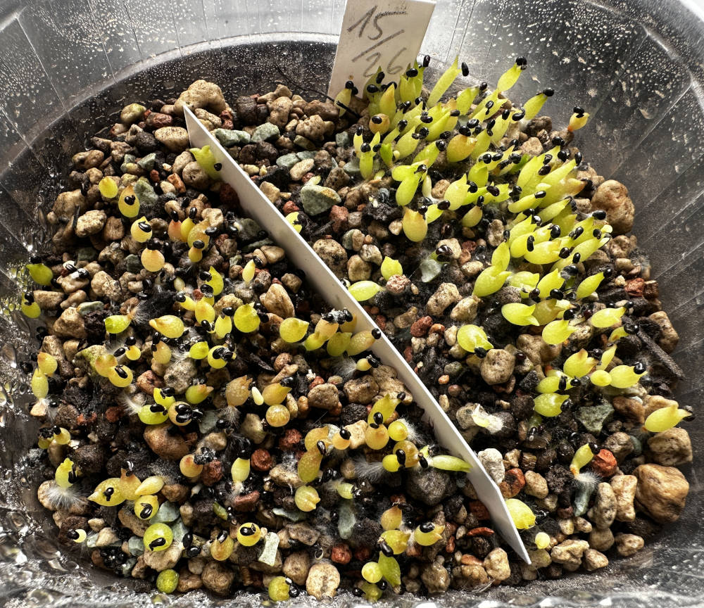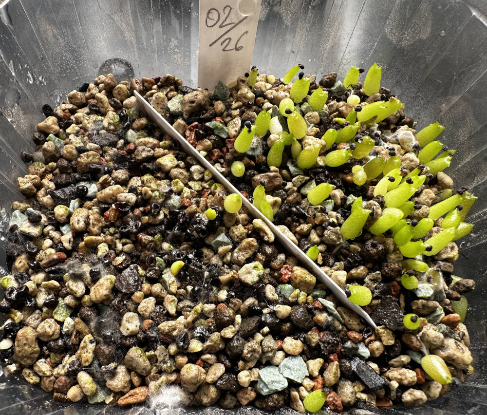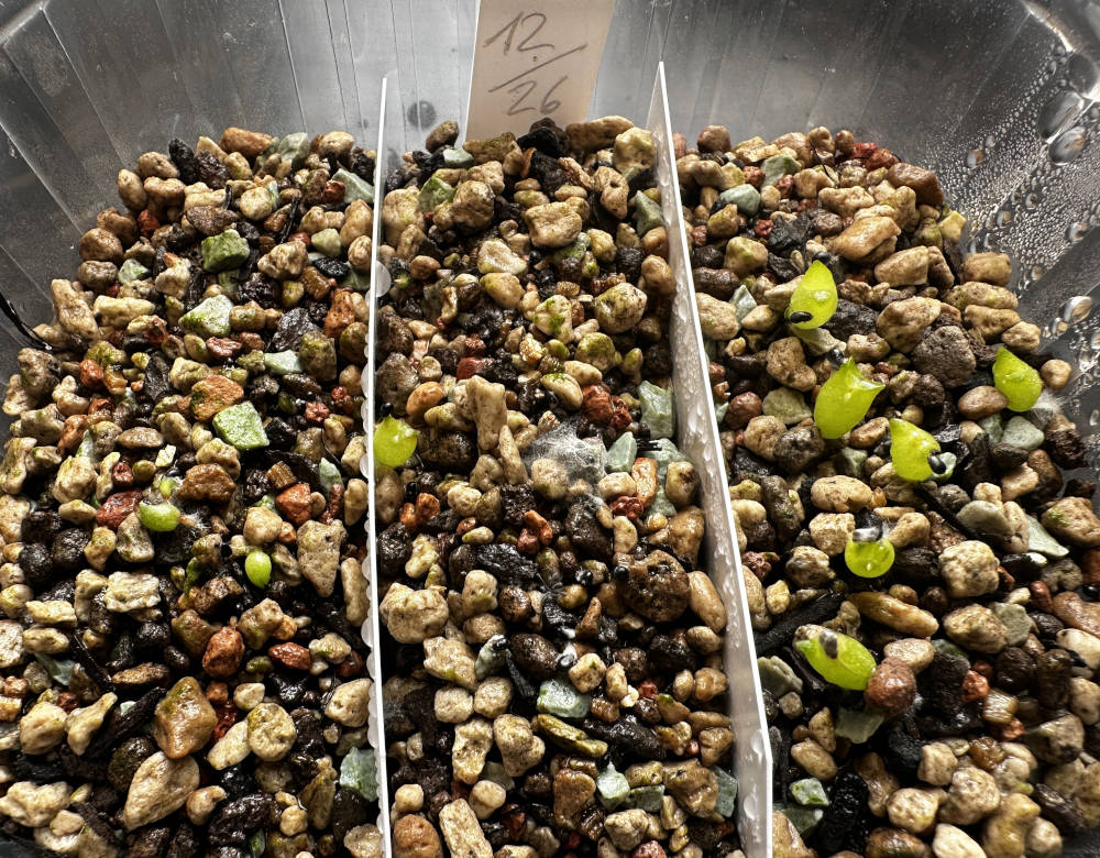 Quelle: eigenes Saatgut 18.01.2026 Eriosyce ca. 120 Korn + Copiapoa ca. 40 Korn gesät 04.02.2026 ca. 100 Korn gekeimt Bilder: 04.02.2026, |